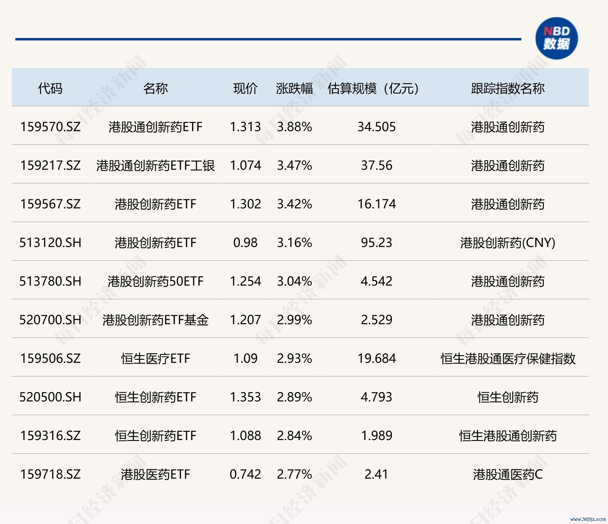 ETF涨跌幅方面,多只港股创新药相关ETF涨超3%。