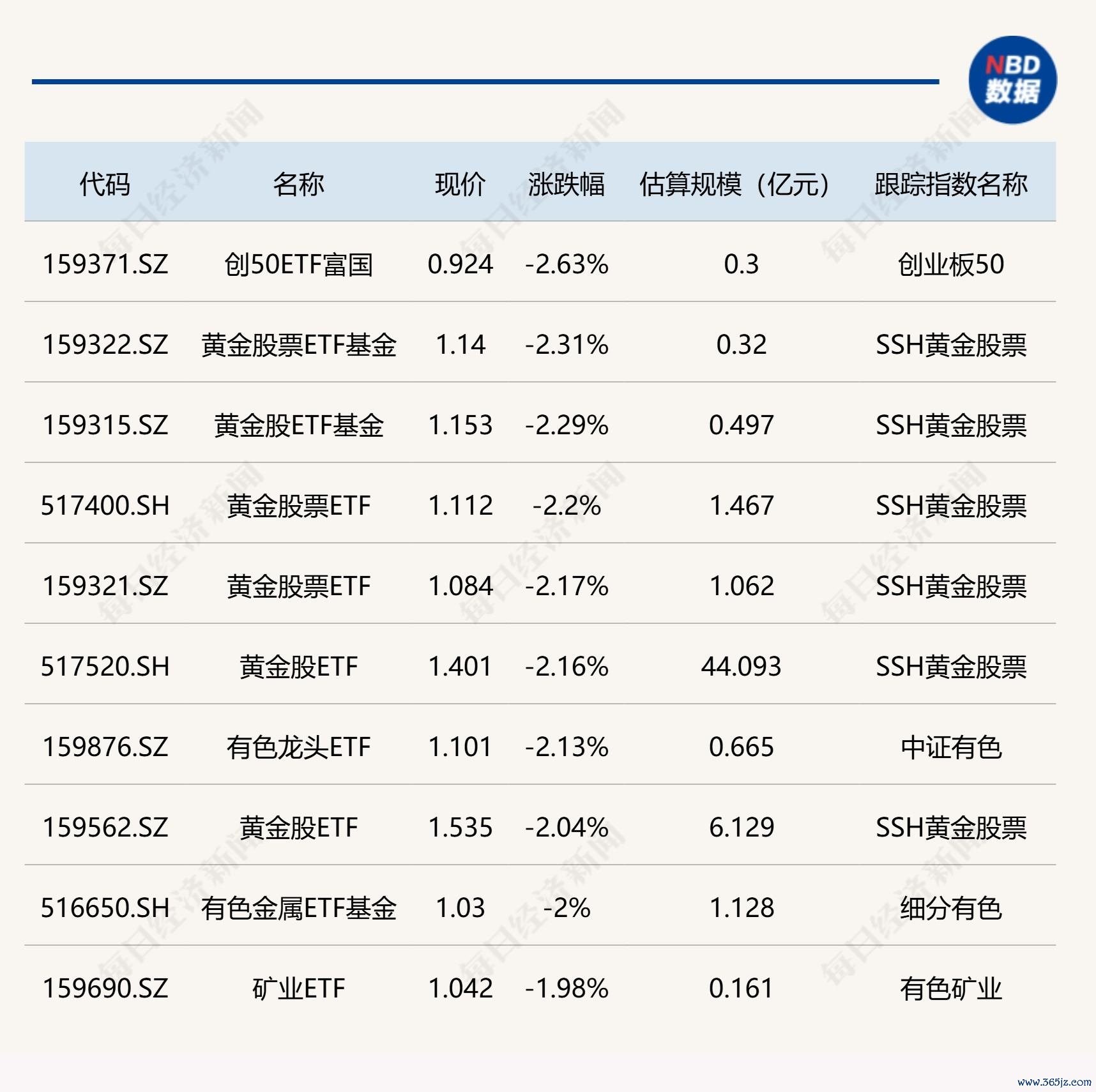 下跌方面,黄金股相关ETF跌超2%。