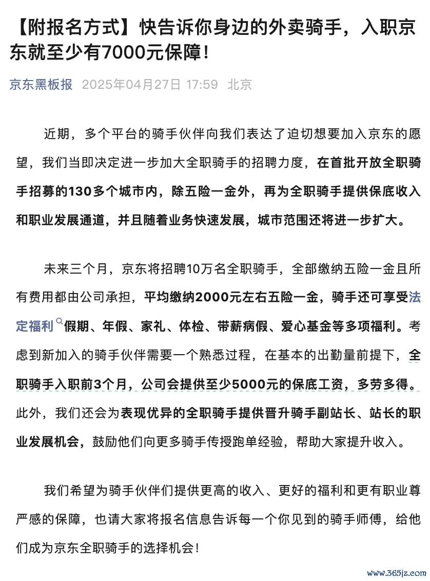 京东:未来三个月将招聘10万名全职骑手京东:未来三个月将招聘10万名全职骑手