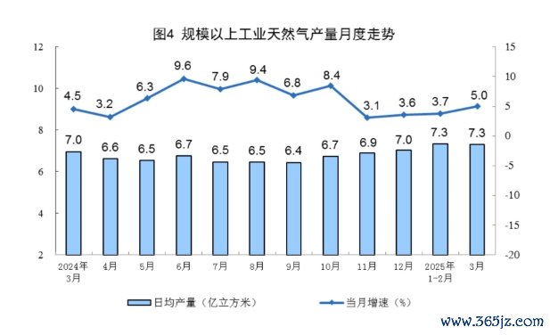 国家统计局:3月份,规上工业天然气产量同比增长5.0%国家统计局:3月份,规上工业天然气产量同比增长5.0%